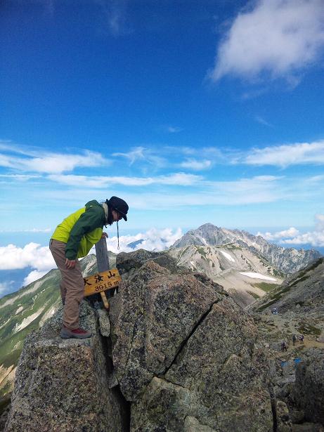 ↑危なっかしく大汝(3015m)へ。後ろの剱岳もよく見えます。