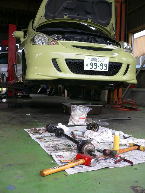 ↑ドラシャ(アウター)ブーツ交換。転ばぬ先に、ね。ほかにベルト交換。