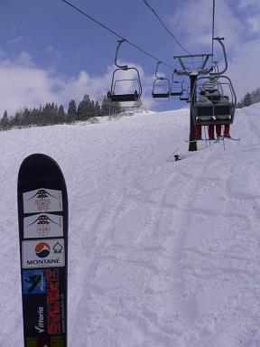日曜は天気もよく、硬いバーンにセット立てようとゴンドラに