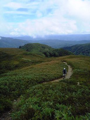 頂上付近は、なだらかな潅木の原っぱ。雪の落ち着いた時期に