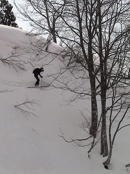ひさしぶりの日に林間パウダーに案内してもらい、今シーズン初めて