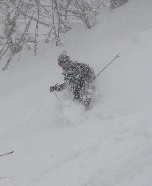 山田旅館裏からシール登行。最初からひざラッセル。途中、酔狂なかたがたが