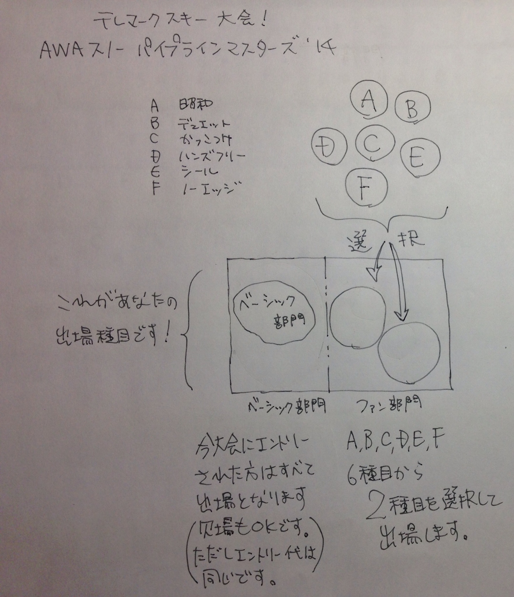 で、ちょっとわかりにくいとご意見をいただいたので、出場種目の選択に